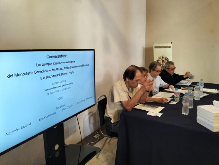 Colectiva Escucha, en colaboración con la UAEM Morelos, a través de la @Secretaría de Extensión UAEM y el Museo Universitario de Arte Indígena Contemporáneo realizaron el Conversatorio: «Los tiempos lógicos y cronológicos del Monasterio Benedictino de Ahuacatitlán, (Cuernavaca-Morelos) y el psicoanálisis (1950/1967). Presentación del libro: «Un monasterio en psicoanálisis» de Juan Alberto Litmanovich. Alejandro Madrid. René Santoveña. Julián Cruzalta. Moderó: Jussara Teixeira. Sábado 7 de junio 2025